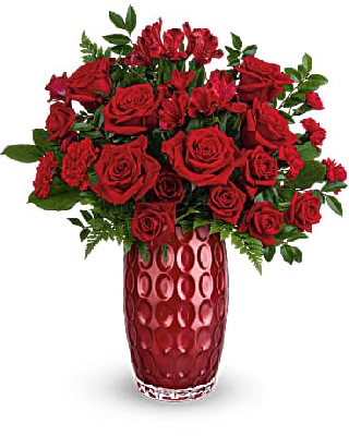 red roses, red spray roses, red alstroemeria