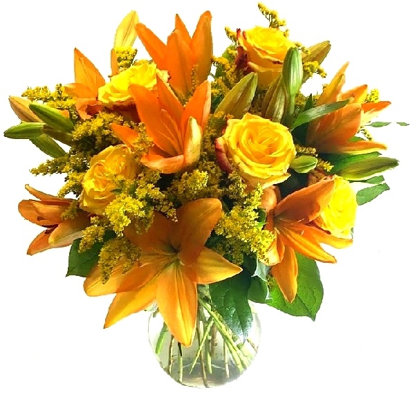 Autumn Glory: Orange Lilies, Yellow Roses and Solidago