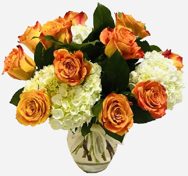 Red Roses, Yellow/Red Roses, and White Hydrangeas