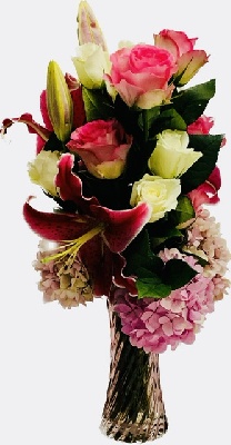 Pink Roses, White Roses, Pink Hydrangeas and Pink Lilies