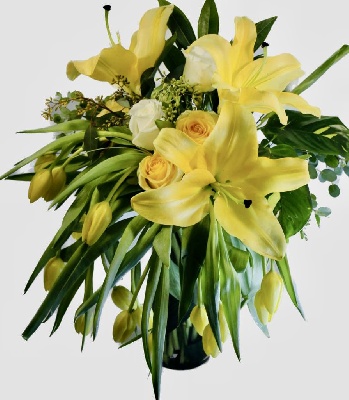 Yellow Lilies, Yellow Tulips, White Roses, Yellow Roses