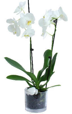 Beautiful White Phalaenopsis Orchids in a Ceramic Pot